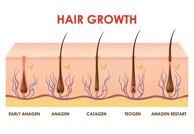 - Catagen (Transition Phase): Growth slows and the follicle begins to shrink.